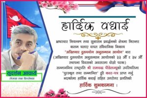 सुशासनको पक्षमा कलम चलाएको भन्दै अख्तियार दुरुपयोग अनुसन्धान आयोगद्धारा सिन्धुपाल्चोकका सुदर्शन आचार्य सहीत ४जना पत्रकार पुरस्कृत हुनु भएको छ ।