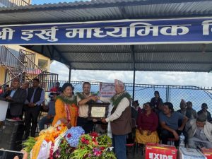 चौतारा साँगाचोकगढी नगरपालिका वडा नं ८का वडा अध्यक्ष अमृत दङ्गालको प्रमुख अतिथ्यतामा इर्खु माध्यमिक बिद्यालयका प्रअ र बिद्यालय ब्यवस्थापन समितीका पदाधिकारीहरुलाइ करिब सातलाख मुल्य बराबरका सोलार व्याकप सेट हस्तानन्तरण गर्नु भएको हो । सोलार व्याकप सेट हस्तानन्तरण गर्दै प्रमुख अतिथी वडाअध्यक्ष दंगालले शिक्षा सिकाइका लागी यस अघी पनी उँहाहरुबाट बिद्यालयलाइ कम्पुटर १५थान उपलब्ध गराउँनु भएको र अहीले बत्ती गइरहेर कम्प्युटर सिकाइमा समस्या परेको बेला सोलार सेटको ब्यवस्था गरिदिएर बिद्यालयलाइ सहयोग गरिदिएकोमा बिशेष धन्यबाद दिदै बिद्यालयको शिक्षा शिकाइमा ठुलो योगदान पुगेको बताउँनु भयो । बिद्याालय व्यवस्थापन समितीका अध्यक्ष भगवान खड्का प्रधानध्यापक प्रकाश दगांल, शिक्षक अभिभावक सघंका अध्यक्ष धन बहादुर तामागं , बिव्यस सदस्य युनिक तामागं लगाएतलाइ नेपाल किड्सका अध्यक्ष हरिशरण गिरीले प्मुख अतिथी अमृत दगांल मार्फत सोलार व्याकप सेट सामाग्री हस्तानन्रण गर्नु भएको हो । वडा सदस्यहरु कार्सागं तामागं,चन्द्रमाँया नेपाली लगाएत शिक्षक बिद्यार्थी अभिभावकहरुको उपस्थितीमा भएको उक्त कार्यक्रममा स्वागत मन्तब्य राख्नु हुँदै बिद्यालयका प्रअ प्रकाश दगांलले भोक लागेको बेला पाएको खानाको छुटै स्वाद र महत्व हुने उदाहरण प्रस्तुत गर्दे बिद्यालयलाइ अति आबश्यक परेको कम्प्युटर र सोलार, ब्याकप सेट ले सोही भुमिका खेलेको हुँदा यो एैती हासीक र अती महत्वपुर्ण सहयोग भएको बताउँनु भयो । बिद्यालयका शिक्षक यमराज बिकले सञ्चालन गर्नु भएको कार्यक्रममा बोल्दै सहयोगी हरिशरण गिरीले बालबालीका क्षेत्रमा सहयोग गर्न पाउँदा आफ्लाइ ख्शी लागेको र यो अबशर जुटाइदिनुहुने वडा अध्यक्ष तथा पुर्ब प्रअ अमृत दगांललाइ बिशेष धन्यबाद दिनु भयो । कार्यक्रमको सामापन गर्दै शिक्षक अभिभाक सघका अध्यक्ष धन बहादुर तामागंले शिक्षा सिकाइका लागी सामाग्री मात्र पर्याप्त भएर हुँदैन शिक्षक बिद्यार्थी अभिभावक सबैले चाहेको खण्डमा मात्र गुणस्तरिय शिक्षा प्राप्त हुने भएकाले यस तर्फ अभिभावकले चासो दिन पर्ने बताउँनु भयो ।बिद्यालयलाइ कम्प्युटर सोलार व्याकप सेट उपलब्ध गराएर सहयोग गरेकोमा बिद्यार्थीहरुले स्वागत गर्दे धन्यवाद पत्र प्रदान गरिएको थियो भने बिद्यालयबाट प्रशंसा पत्र प्रदान गरिएको थियो । कार्यक्रममा नेत्रज्योती कृषी सहकारी सस्था ले कृषी उत्पादनमा आधारित २२हप्ते तालिममा सहभागीहरुलाइ समेत प्रमाण पत्र बितरण गरिएको थियो ।