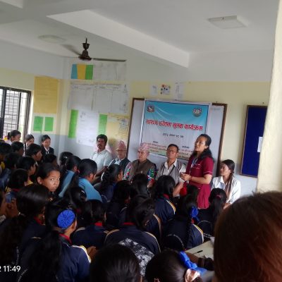कार्यक्रममा झाडापखाला र जलवियोजनबारे स्वास्थ्यकर्मी दिपिका पण्डितले जानकारी गराउनुका साथै सन्तुलित भोजन सम्बन्धी जानकारी दिनुभयो । उहाँले विद्यार्थीहरूलाई खानाको स्वच्छतामा विशेष ध्यान दिन आग्रह गर्दै जलवियोजन हुनबाट सचेत रहनु अनुरोध गर्दै विद्यार्थीहरूलाई कार्यक्रमको महत्वबारे बताउनु भयो । बर्खायाममा लाग्ने मलेरिया रोगबाट बच्न समेत सचेतनामूलक जानकारी प्रदान गरेको थियो ।