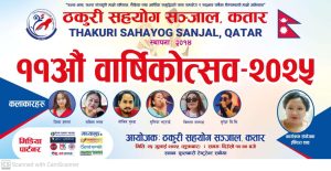 ठकुरी सहयोग सञ्जाल कतारले वार्षिकोत्सव मनाउने भएको छ । समाजले आगामी शुक्रवार सनैयामा अवस्थित फूलबारी रेस्टुरेन्टको सभा हलमा विविध सांस्कृतिक कार्यक्रमको साथमा ११औँ वार्षिकोत्सव २०२५ भव्य रूपमा मनाउन लागेको हो ।