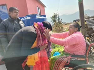 नेकपा एमालेका तर्फबाट उमेदवार बन्नु भएका शेर बहादुर तामाङले चौतारासाँगाचोकगढी नगरपालिका १४मा रहनु भएका ८४ बर्षको बृद्धआमा धनमाँया नेपालसँग आसिर्बाद थाप्न आउँनु भएको छ ।