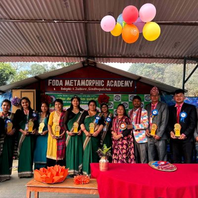 सिन्धुपाल्चोक । फोडा मेटामोर्फिक एकेडेमीको आठौँ वार्षिकोत्सव अभिभावक भेला, पूर्व–प्राथमिक तह (यूकेजी) दीक्षान्त, सांस्कृतिक प्रस्तुति तथा पुरस्कार वितरण कार्यक्रमसहित भव्य रूपमा सम्पन्न भएको छ। कार्यक्रमको उद्घाटन विश्व मानव अधिकार संगठनका केन्द्रीय महासचिव डा. राजेन्द्र कोजु र विद्यालयका संस्थापक अध्यक्ष तथा सभाध्यक्ष रमारम तेलले संयुक्त रूपमा गरेका थिए ।