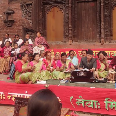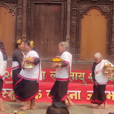 काठमाडौं — जेष्ठ नागरिकहरूको सक्रिय सहभागितामा आधारित एक विशेष सांस्कृतिक तथा सम्मान कार्यक्रम राजधानीको हनुमानढोका दरबार क्षेत्र मा सम्पन्न भएको छ। न्हापांगु पलाः नेवाः मिसा पुचःको आयोजनामा भएको उक्त कार्यक्रममा ७० वर्ष नाघेका बाजे–बज्यैहरूले भजन–कीर्तन, परम्परागत नृत्य तथा सांस्कृतिक प्रस्तुति प्रस्तुत गरेका थिए। कार्यक्रममा सहभागी जेष्ठ नागरिकहरूले नेवार समुदायका मौलिक पोशाकमा जीवनशैली झल्किने गरी नृत्य र गीत प्रस्तुत गरेका थिए। बिहानको दैनिक क्रियाकलापदेखि साँझसम्मका सांस्कृतिक अभ्यासलाई समेटेर विभिन्न रैथाने गीतमा आधारित प्रस्तुति दिइएको थियो।